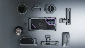 בנוסף, כדי להתגבר על בעיית החום, במיוחד כאשר מצלמים וידאו באיכות 8k או עם מקודדים שצורכים מתח רב, המערכת מציעה "מודול קירור" המתחבר ישירות לגב המכשיר באמצעות מגעים מגנטיים. זה לא רק מוריד את טמפרטורת המכשיר ומאפשר זמני הקלטה ארוכים יותר, אלא גם כולל חיבור USB-C נוסף המאפשר טעינה בו-זמנית של המכשיר בזמן שממשקים האחרים תפוסים על ידי אביזרים.