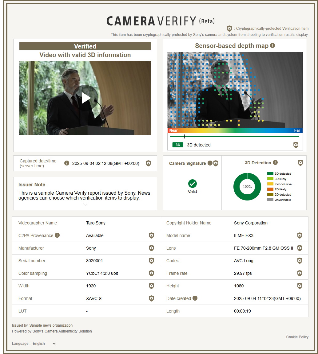 הטכנולוגיה של סוני מבוססת על תקן ה-C2PA (הקואליציה למקוריות ותוכן) ויוצרת "חתימה דיגיטלית" בתוך המצלמה ברגע הלחיצה על כפתור ההקלטה.